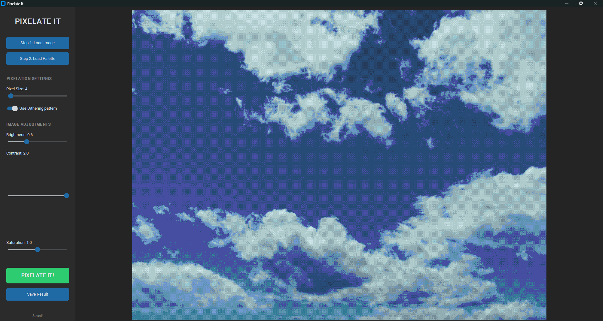 Adjust Brightness, Contrast, and Saturation to fine-tune the final look before pixelation. -