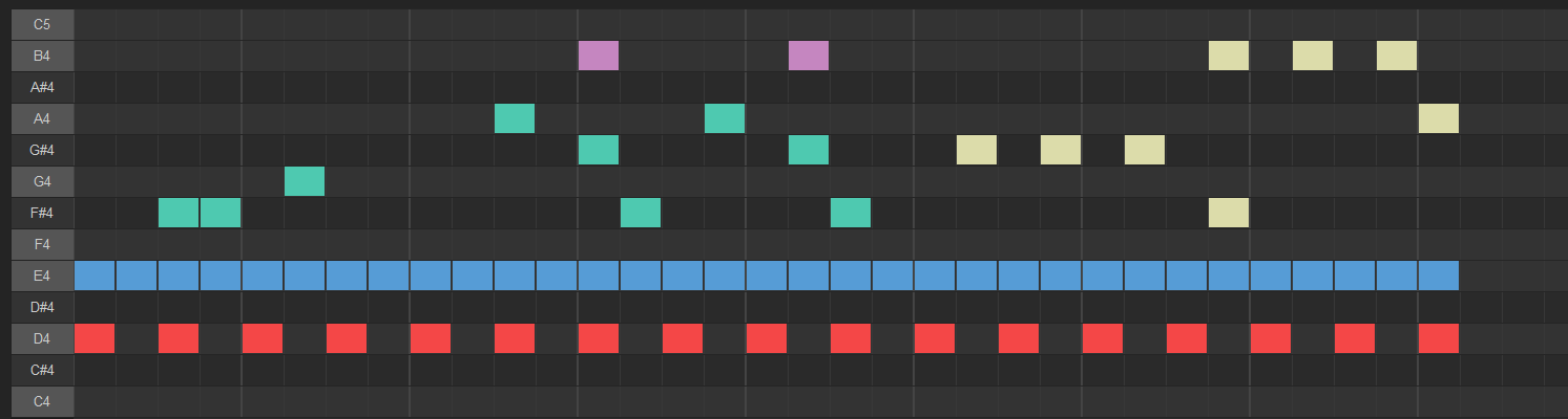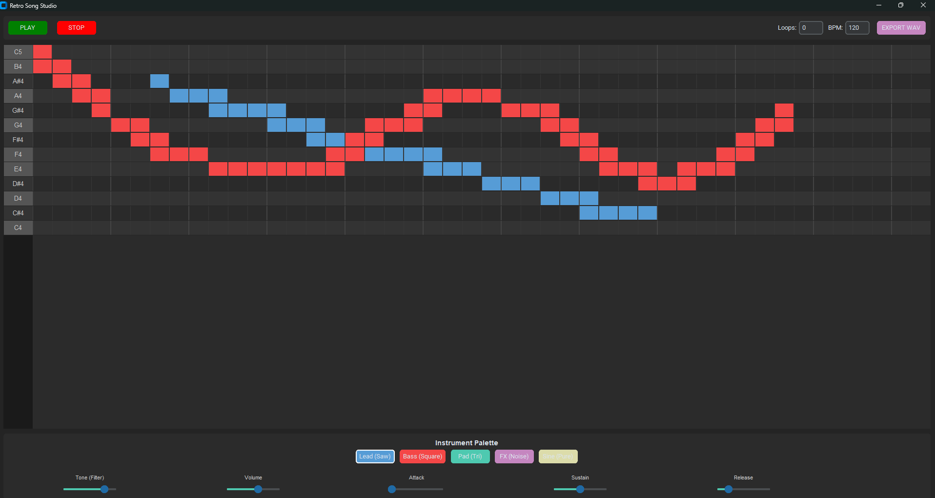 * Multi-Track Sequencing: 5 Instruments (Lead, Bass, Pad, FX, Sine) with unique sounds and colors.